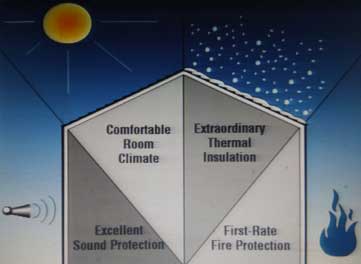 Thermal protection in buildings directly influences the use of energy for heating and cooling, as well as the ability to control the room climate. Less thermal protection results in more energy usage for heating and cooling and a much less comfortable room environment. The thermal protection requirements for the external construction elements of buildings are generally categorized in to one of two groups, either summer or winter. The thermal protection for winter conditions is intended to minimize heat loss from the building, thus allowing the building to be economically heated. The thermal protection properties must, therefore, be determined by considering both criteria .In contrast, the thermal protection for summer conditions is intended to minimize heat gain from the warm outside temperatures and sun rays, thus allowing the building environment to be economically controlled in a comfortable state. Thermal protection in the summer is mainly determined by the capability of the exterior building elements to store and dissipate heat. This property is determined by the mass and thermal conductivity of the building material. With ECOCON, a construction material is available that optimally combines the material properties necessary to provide excellent thermal energy efficiency for the building and healthy indoor environment.